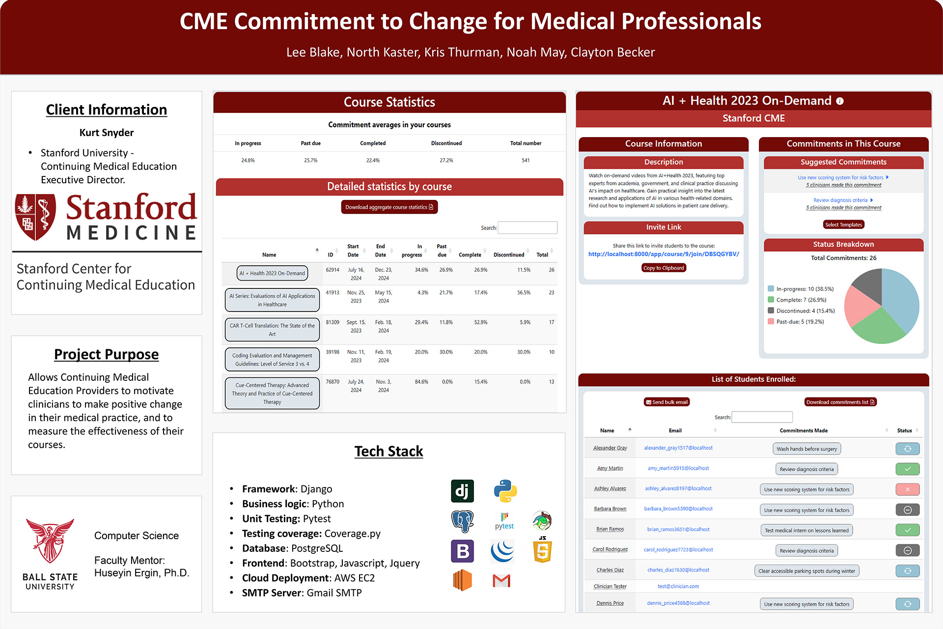 - Created as part of Ball State's CS Capstone course for a real client at Stanford University's CME Program.